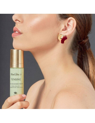 Tensine Oval & Neck Designer to krem ujędrniający owal twarzy, poprawiający stan skory szyi i dekoltu. Czynniki wzrostu pochodzenia roślinnego wpływają korzystnie nie tylko na ujędrnianie ale również na redukcję tzw podwójnego podbródka, restrukturyzacje tkanek, natychmiastowy efekt ujędrniający. Wspiera redukcje tkanki tłuszczowej w obrębie podbródka. 90% składników pochodzenia roślinnego.